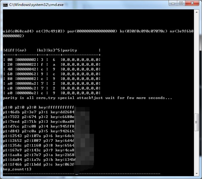 通过这种方式同样可以获得卡片的Key,但并不是所有的卡片都存在这种漏洞,如果不存在PRNG漏洞,就需要使用另外的方法来获得卡片的Key