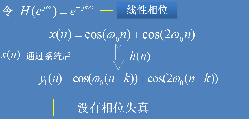 输出y(n)等于输入x(n)在时间上k个采样点的延迟,可见当系统具有线性相位时可以达到无失真输出的目的.
