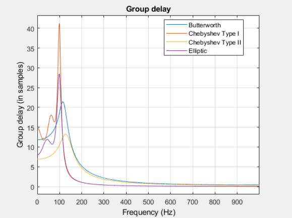 如果关注相位问题,请记住 Butterworth 和 Chebyshev II 类设计具有最平坦的群延迟,因此引入的失真最小。