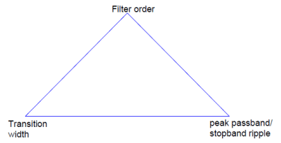 滤波器设计中的设计设定可形象地比喻为下图所示的三角形,每个设定对应其中一个角。