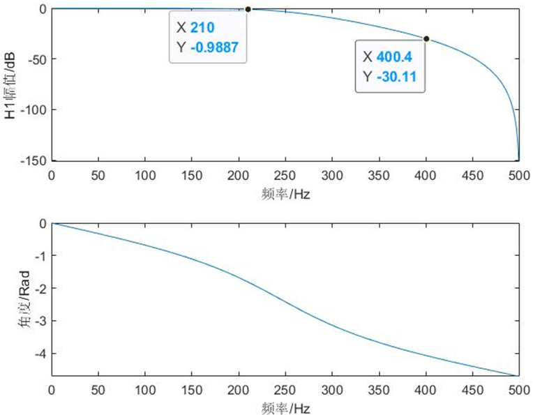 要求:通带截止频率为350Hz,阻带截止频率为500Hz,阻带最小衰减40dB。