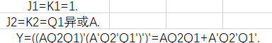 从绘制的状态图中可以看出, 当输入A=0时, 电路按照00->01->10->11->00的规律变化; 当输入A=1时, 电路按照00->11->10->01->00的规律变化——A=0时, 电路实现同步四进制加法计数过程, A=1时, 电路实现同步四进制减法计数过程: 在减法计数过程中, 电路状态为00时输出Y=1, 其它状态的输出Y=0; 在加法计数过程中, 电路状态为11时输出Y=1, 其它状态的输出Y=0. 综上所述, 该电路实现了同步四进制可逆加减法计数器的功能,且可以自启动.