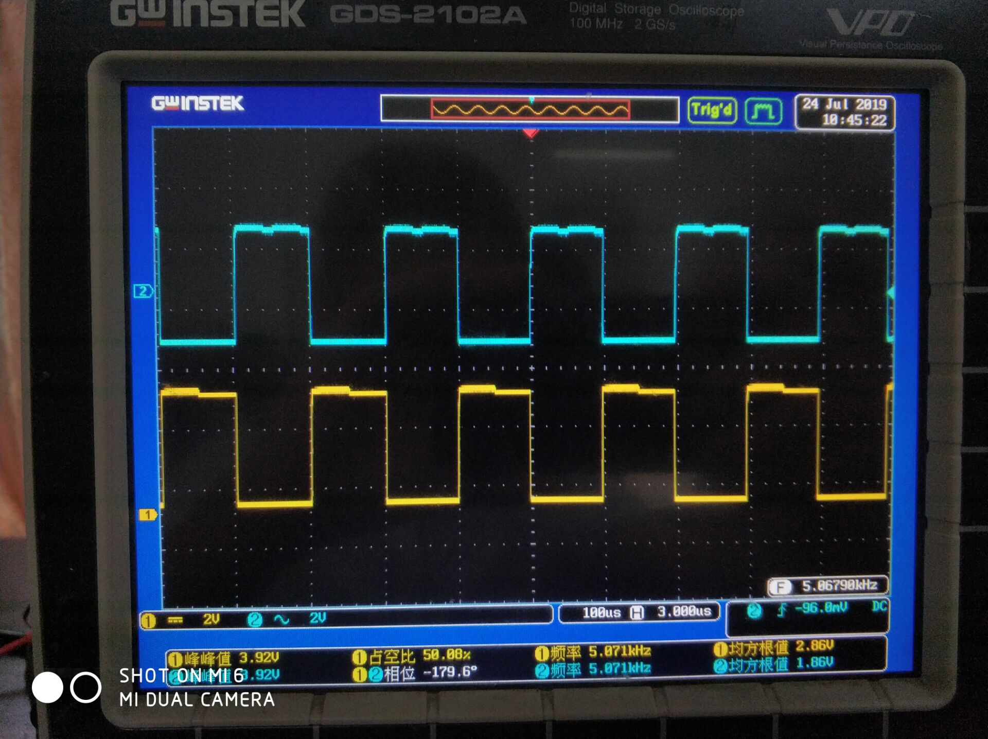 黄色是方法一,蓝色是方法二(波形畸变不一样)