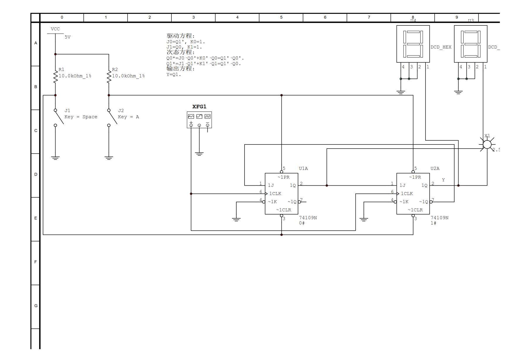 第二步, 根据驱动方程求出次态方程(电路图上方已表明).