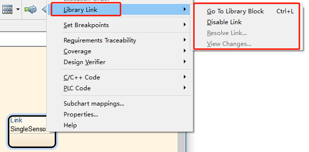 链接子图的右键菜单中,可以设置与库链接(Library Link)相关的功能: