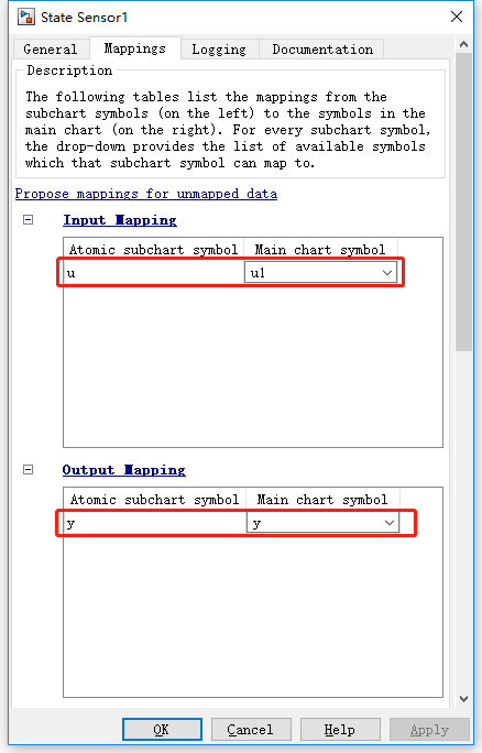 在这里,将Sensor1的输入u映射到u1,输出y映射到y。