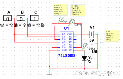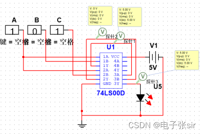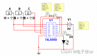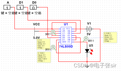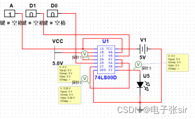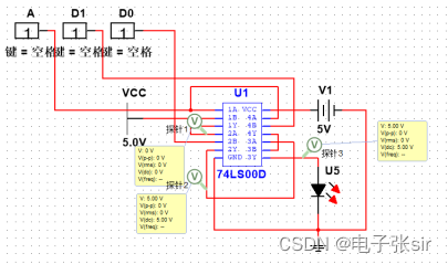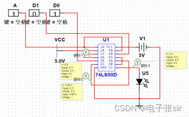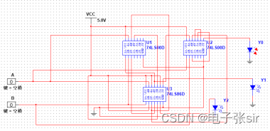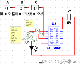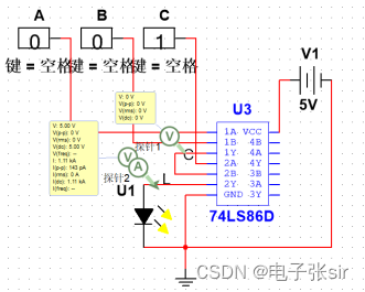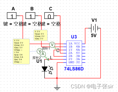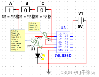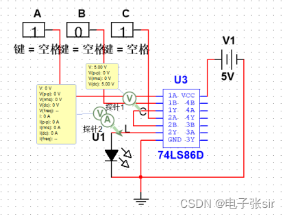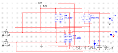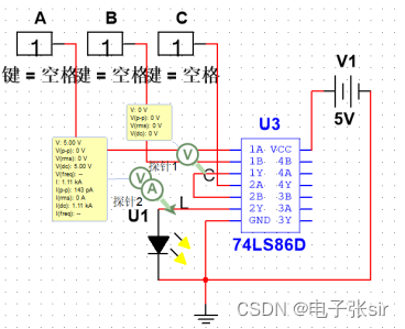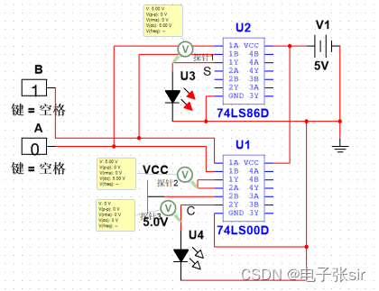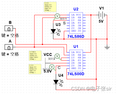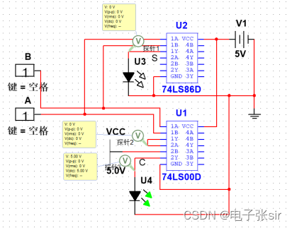 利用 二输入四与非门74LS00和二输入四异或门74LS86和LED来达到实验效果