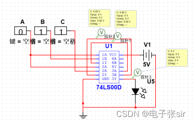 说明:三人中的1人为主裁判,其余二人为副裁判,即:只有在主裁判通过,并且至少有一名副裁判通过的情况下才算表决通过,请用一片74LS00设计一个电路实现此功能。