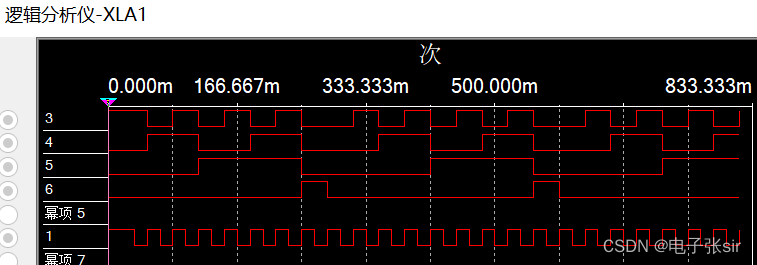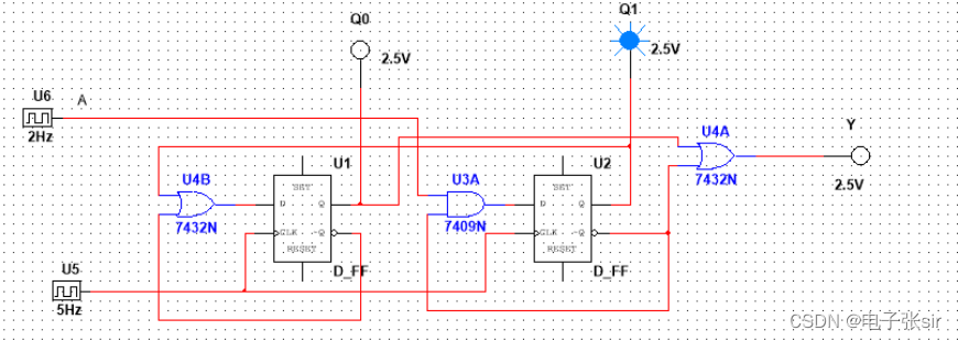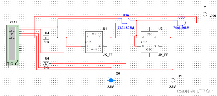 波形从上往下分别为U5,A,Q0,Q1,Y。时序图与分析一致