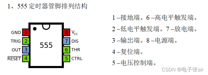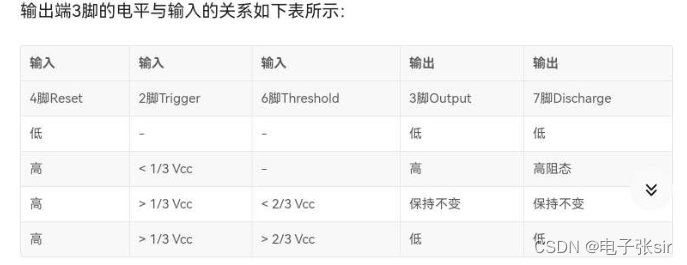 控制电压端(5脚),平时输出2/3VCC作为比较器C1 的参考电平,当5脚外接一个输入电压, 即改变了比较器的参考电平,从而实现对输出的另一种控制,在不接外加电压时,通常接一个0.01μF的电容器接地, 起滤波作用,以消除外来的干扰,以确保参考电平的稳定。