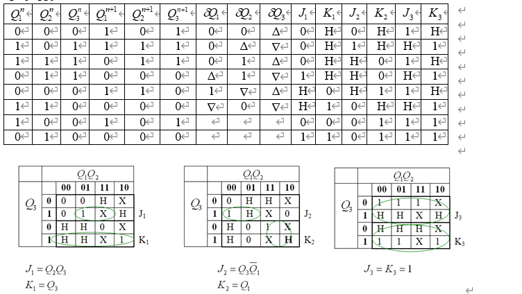 1、得到jk触发器的逻辑函数(参考康华光的数字电子技术第六版6.3节同步时序电路的设计)