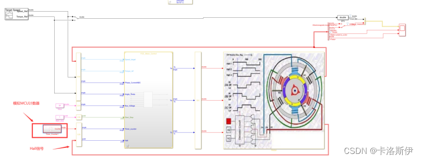 Hall模型的构建需要搭建Hall信号,模拟MCU的定时计数器模块,Hall中断,ADC中断。