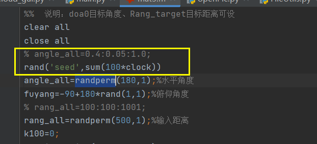 我是靠谱客的博主 高贵方盒,这篇文章主要介绍python 调用matlab 生成随机数,不随机。matlab随机数不变,随机一直是一个数。 randperm函数随机失败,现在分享给大家,希望可以做个参考。