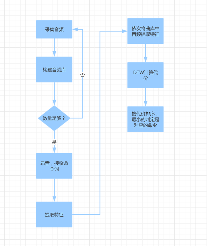 本文主要是实现了一个简单的命令词识别程序,算法核心一是提取音频特征,二是用DTW算法进行匹配。当然,这样的代码肯定不能用于商业化,大家做出来玩玩娱乐一下还是不错的。