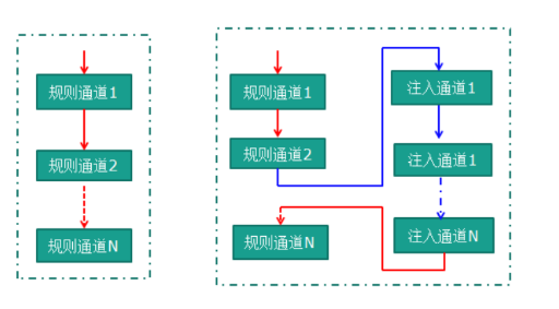 在执行规则通道组扫描转换时,如有例外处理则可启用注入通道组的转换。也就是说,注入通道的转换可以打断规则通道的转换,在注入通道被转换完成之后,规则通道才可以继续转换。
