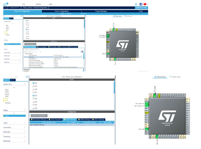 当然,需要注意的是:如果ADC_SQRx或ADC_JSQR寄存器在转换期间被更改,当前的转换被清除,一个新的启动脉冲将发送到ADC以转换新选择的组。
