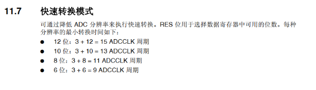 需要和外部电路的输入阻抗匹配,采样时间适用于所有通道