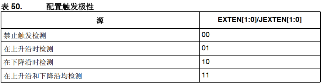 软件设置ADC_CR的ADSTART=1时,触发选择有效。