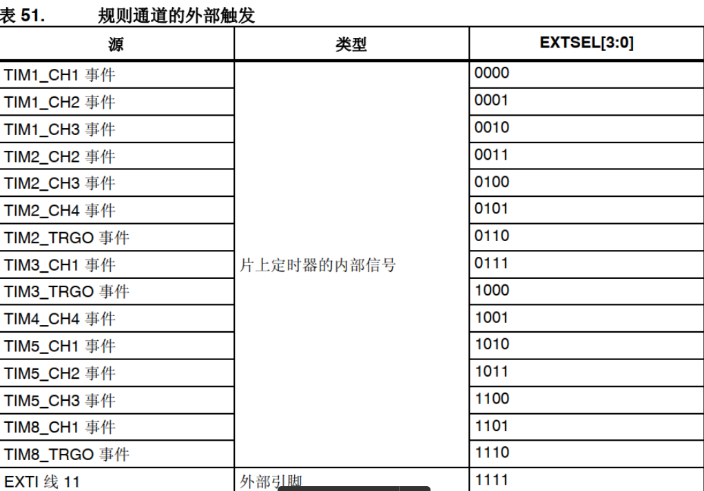 外部事件(例如:定时器TRGO,输入引脚)触发,可以设置触发源以及触发极性