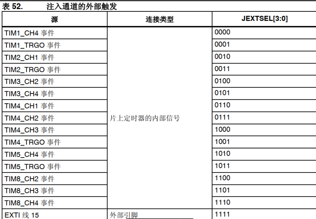 注入通道组:最多可以安排4个通道。注入组和它的转换顺序在ADC_JSQR寄存器中选择。注入组里转化的总数应写入ADC_JSQR寄存器的L[1:0]中。