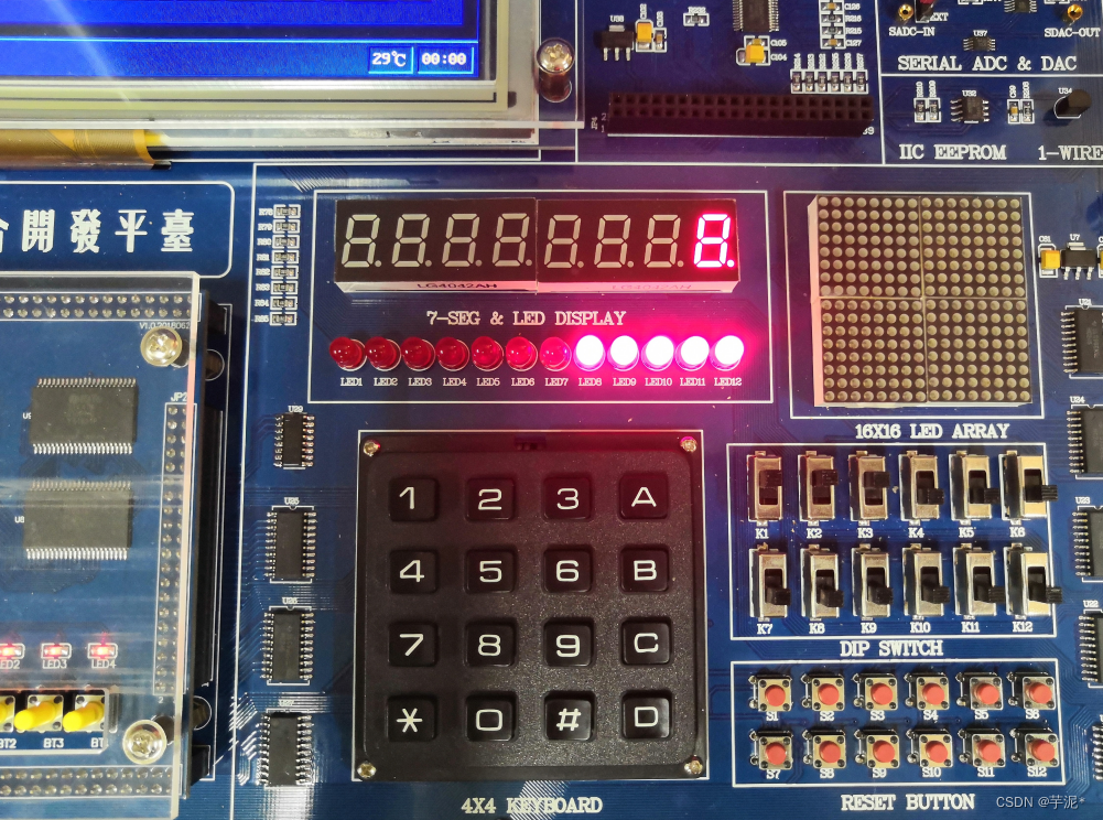 拨动开关K4,即K7 K6 K5 K4表示D3 D2 D1 D0为0001;