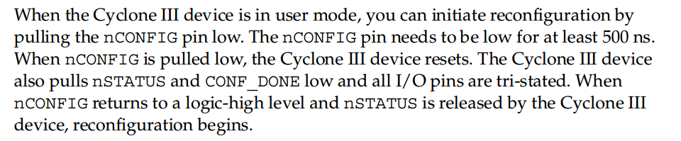 (1)首先注意的nCONFIG引脚,当其由低电平进入高电平时,程序进入配置过程。