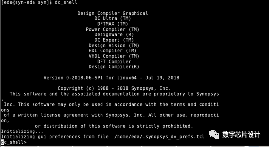 答:在/home/eda/的用户目录下,打开终端,新建文件夹,进入文件夹以后,输入相应的EDA工具的命令。例如:打开DC综合工具。S家的数字设计工具链很多包括从前端设计到后端。每个工具都需要学习如何使用。(在后期公众号会出系列教程)。