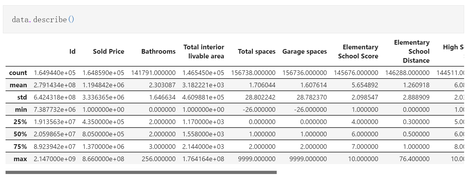 最后用data.describe()看看处理完的数据的特征
