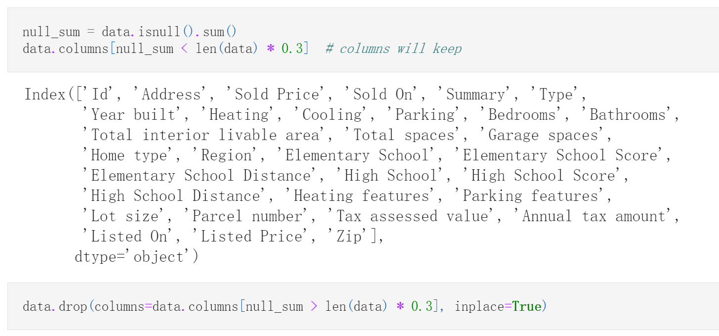 将列中30%缺失的列删去,以此来简化数据