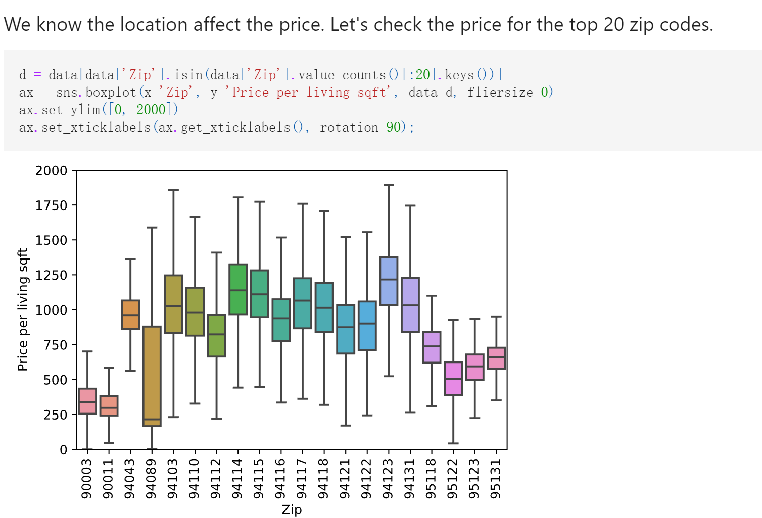 查看每个邮政编码的房价