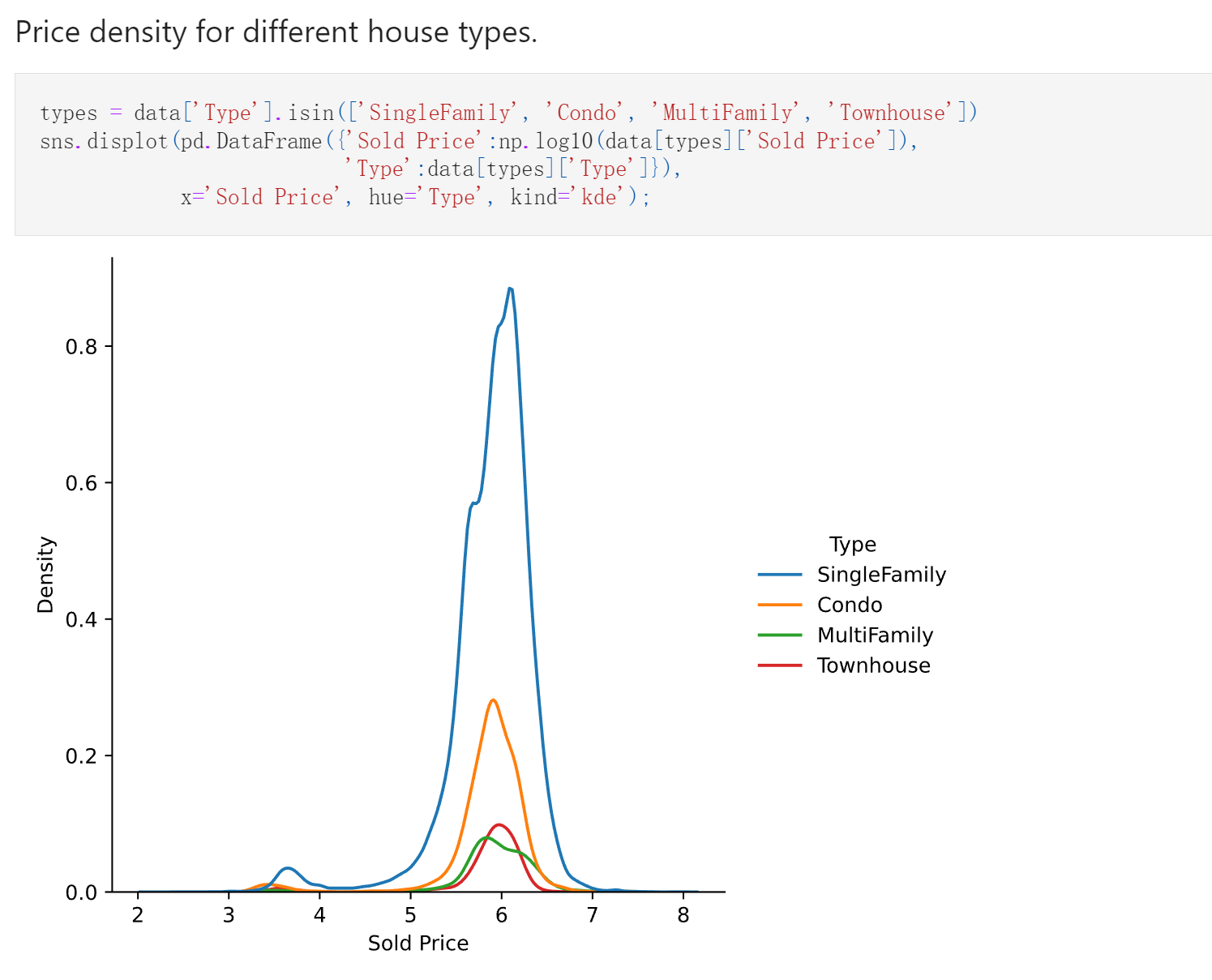 查看不同类别的房子是什么价格