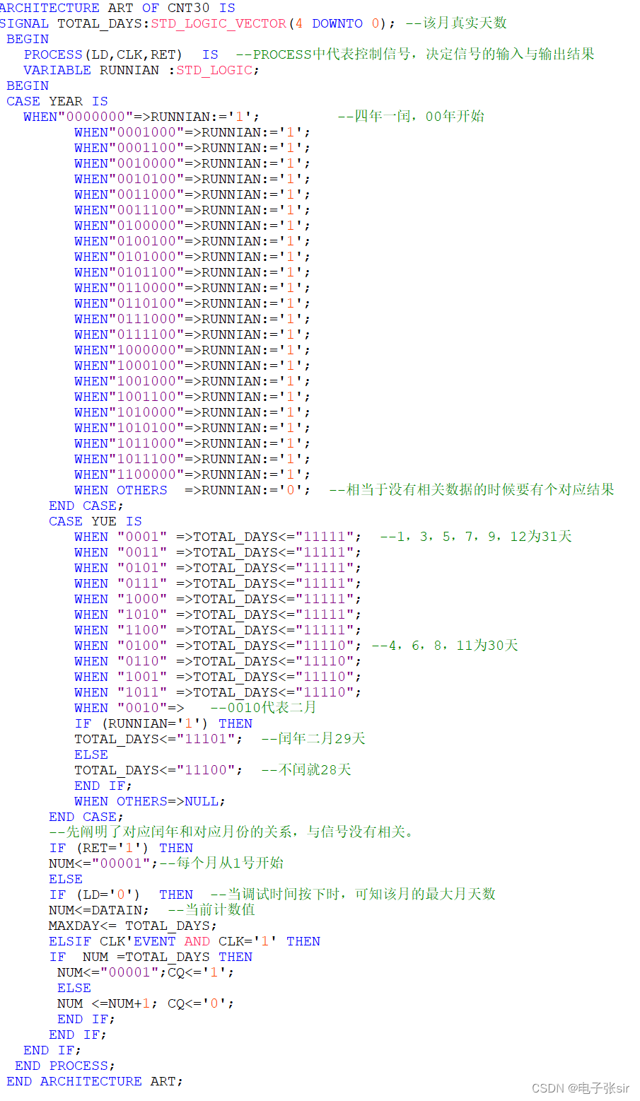 SIGNAL MAX:STD_LOGIC_VECTOR(4 DOWNTO 0); --由于每月的数极为特殊。只当调整时间的时候才会显示