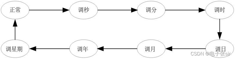 2.3 调整控制模块:为了和手表的功能一样可以调整时间来对应现在的时间,所以需要调整控制模块去调整对应时间的各个模块。如下图所示: