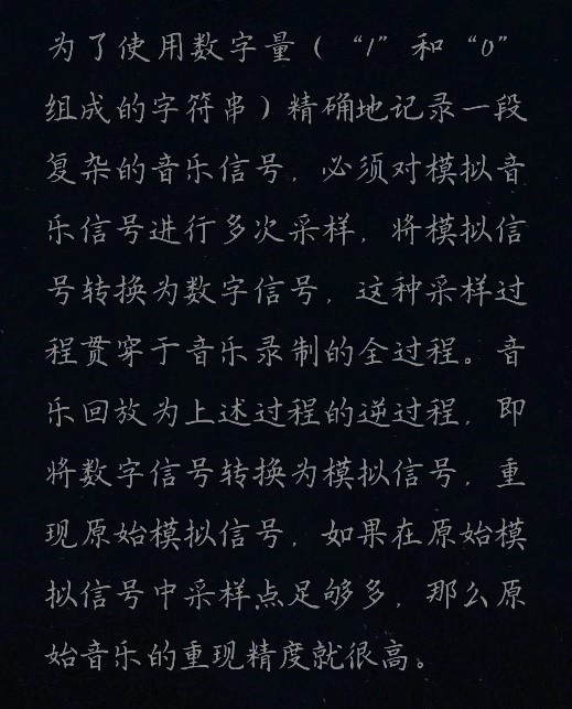 音乐的录制就是转化为数字信号存储在DVD或CD中,