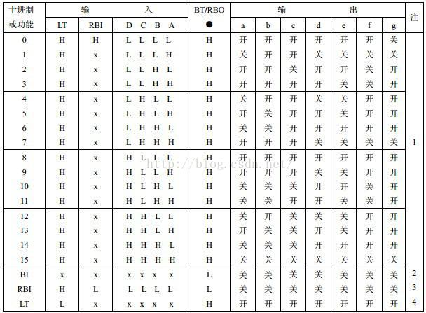 表2-2 74LS47功能表