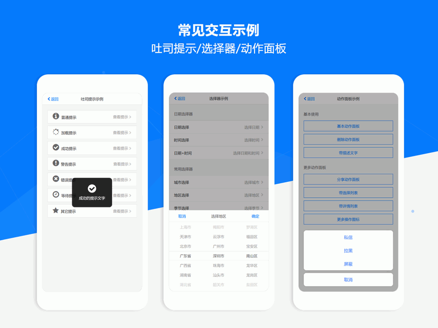 本套作品的中相关元件的整理参考了Ant Design、MUI、Frozenui等前端组件库,动态图表组件由原型协作与发布平台Axhub提供,作品中关联分享的相关交互规范和用户体验类文章全部整理自优设网UISDC,在此特别注明并向以上相关平台表示感谢。