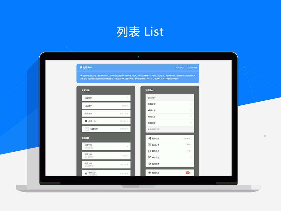 作品中还提供了常用手机设备模型及移动端交互手势图标等素材,这些素材可以让你输出的原型方案更加标准和规范。在提升易用性和可用性的同时,作品中还提供了很多规范性的使用建议和参考。每个元件类型都有详细的介绍和使用说明,而且关联了相关交互规范和用户体验类文章,所以这套作品不仅是一套实用的元件库,更是一份全面的交互原型设计指南。