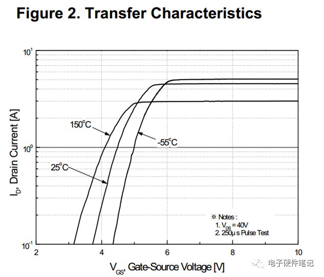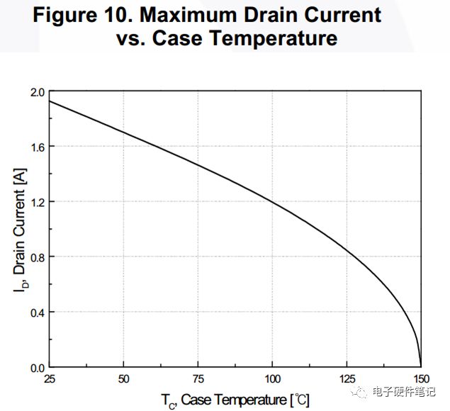 ID具有负温度系数。手册里,在常温下ID为1.9A,而在100℃下却只有1.14A。下图-3也可以说明。
