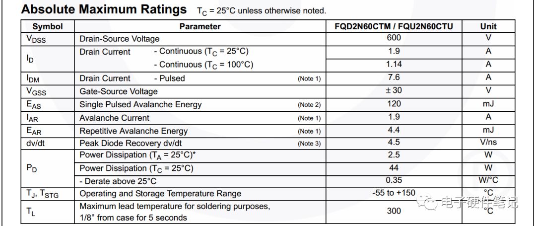 ■ Absolute Maximum Ratings描述的是器件的最大额定值。设计时要确保管子在最恶劣的条件下都不能超过这些额定值,即要求降额设计。