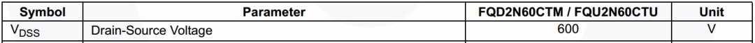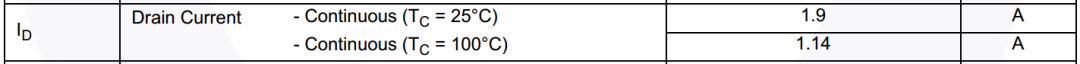 1.9A,600V:表示MOSFET在常温下的通流能力为1.9A,关断时DS耐压为600V;