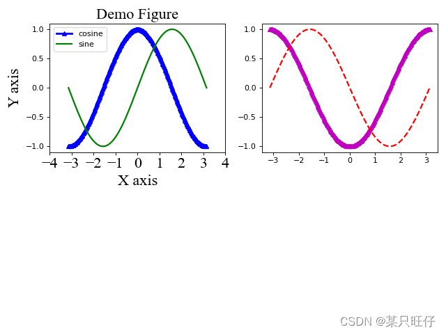 1.5 xlabel('X axis',font) ylabel('Y axis',font): 横轴标签,纵轴标签