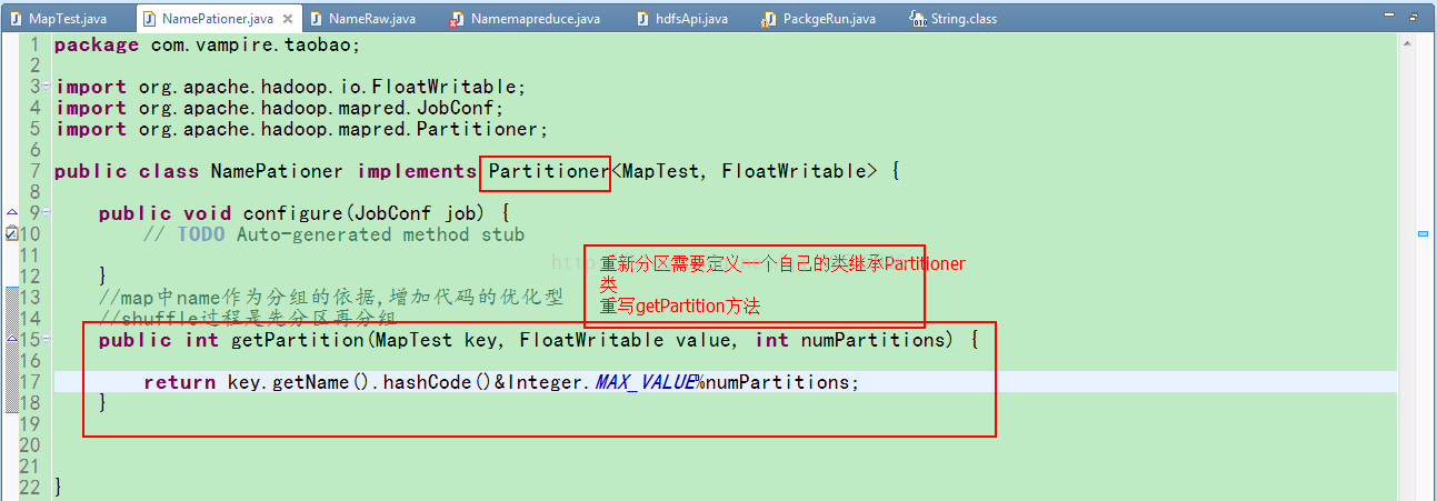 1.自定义分区 extends Partitioner 可以使用map输出的key或者value