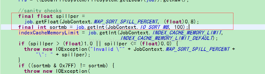 6.调整shffle环形缓冲区大小以及spill溢写的阈值(MapOutputBuffer)