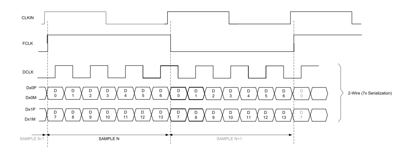 Thinking:高速率情况应该也可使用双线级联DDR14bit模式,对数据进行拆分。