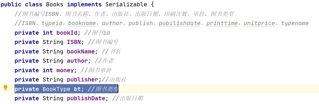 System.out.println(books.getBookId() + "tt" + books.getISBN() + "t" + books.getBookName() + "t " + books.getAuthor() + "t " + books.getMoney() + "t " + books.getPublisher() + "tt" + books.getPublishDate());