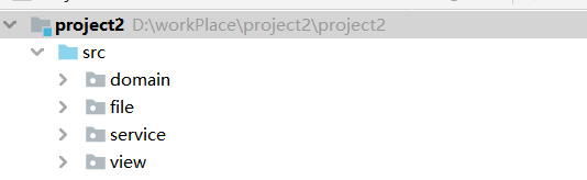 在写项目时,我们首先就得弄明白需要怎么构建起来该项目的框图。我这里参考项目一框架,一个界面显示区(view),一个实体类区域(domain),一个功能实现区(service);因为该项目用到的是IO流知识,得用一个包来装文件内容。