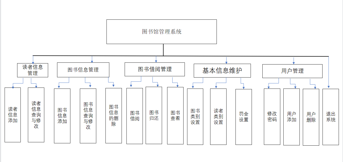 仔细揣摩文档给出的需求图后,我们其实最好不要按着给出的顺序依次写(不然后面太麻烦),因为读者和图书里面包含了相应的类别,图书借阅与归还也和读者、图书(读者类型、图书类型)相关联。