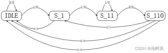米利型状态机状态定义:IDLE, S_1,S_11,S_110