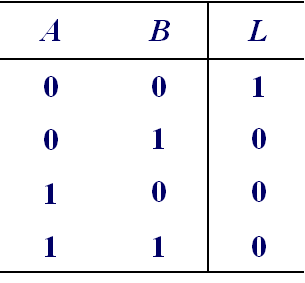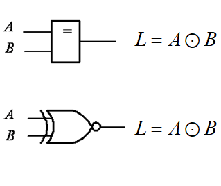 L = A ˉ B ˉ + A B = A ⊙ B L=bar{A} bar{B}+A B=A odot B L=AˉBˉ+AB=A⊙B