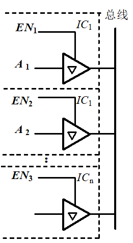 工作时只要控制各个 E N n EN_n ENn端的逻辑电平,保证在任何时刻仅有一个三态输出门电路被使能,就可以把各个输出信号按要求顺序送到总线上,而互不干扰。